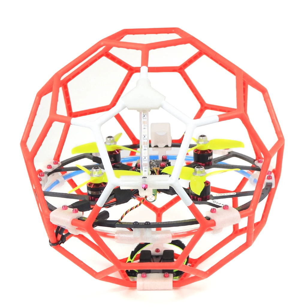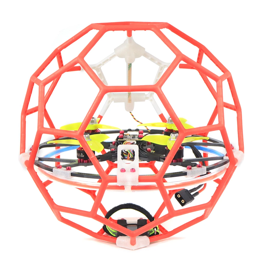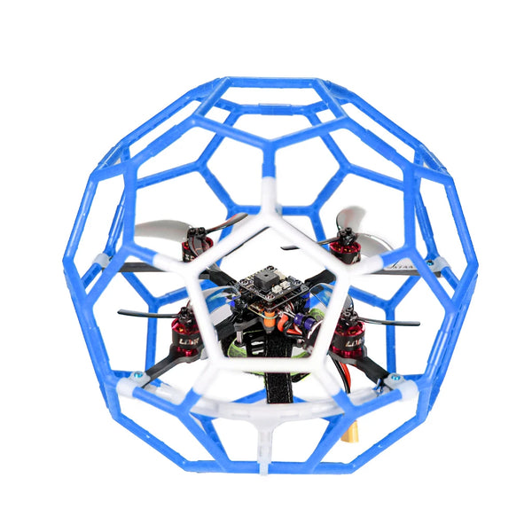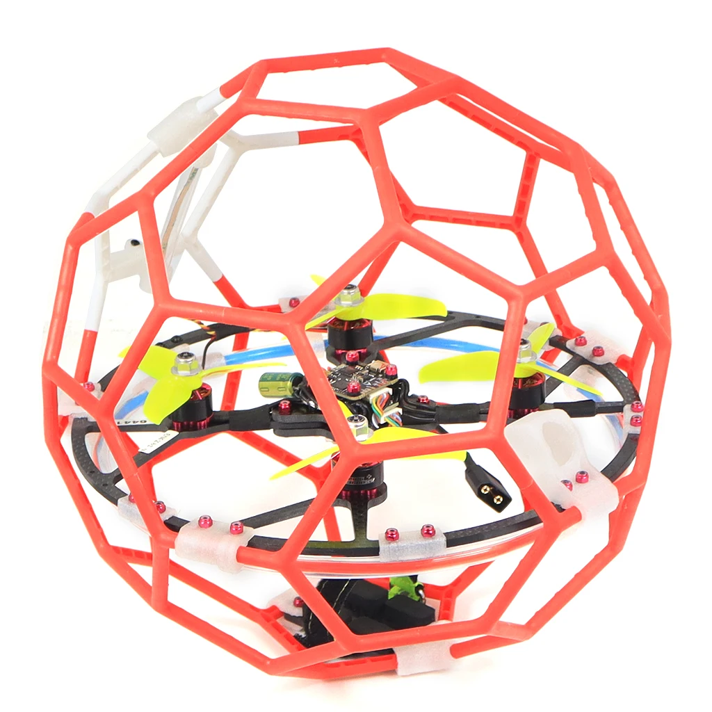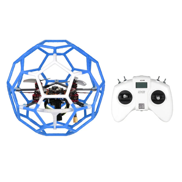 LDARC Flyball 220 Soccer Droneis a quadcopter in the shape of a soccer ball. Itfeatures a 220mm diameter protective frame which is made of high density and flexible material, making it very bouncy when hitting hard surface, e.g. buildings, trees.