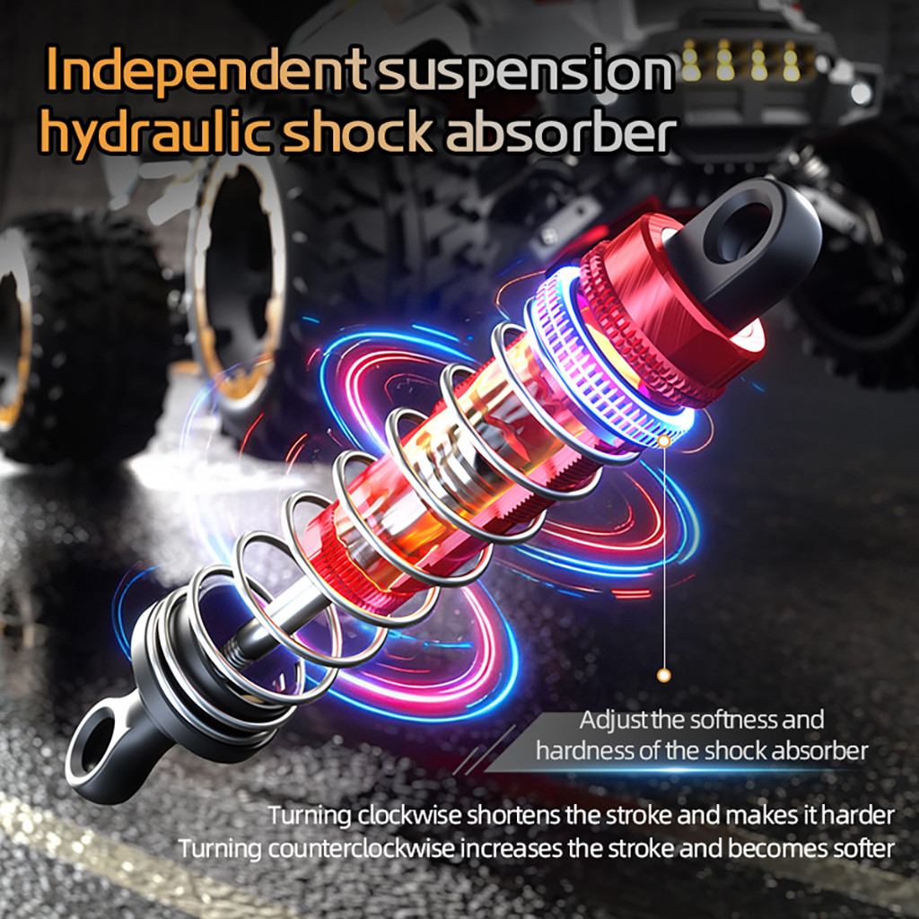 3. Four-wheel drive: front and rear upright spring shock absorption, double wishbone independent suspension system.