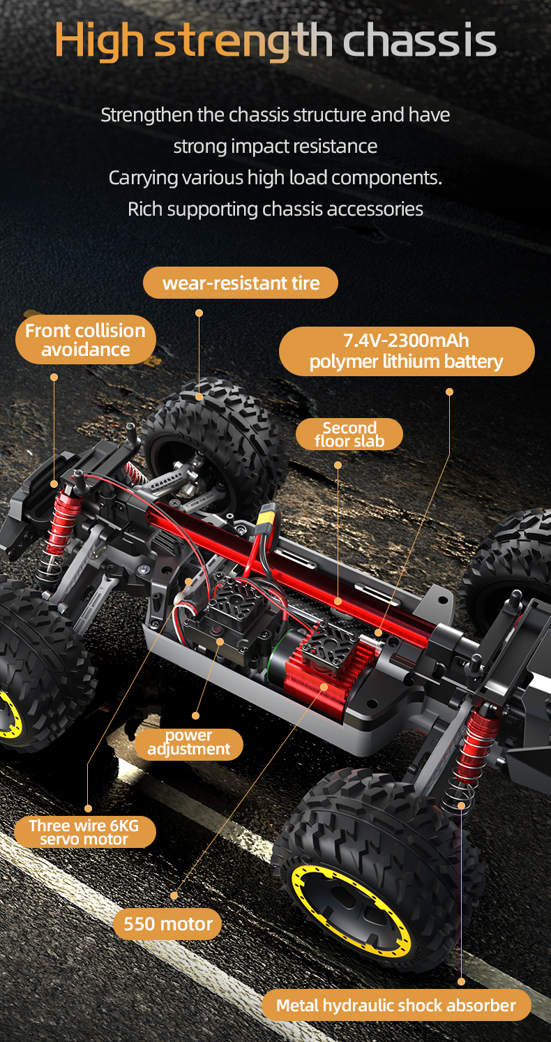 4. 2.4G full-scale synchronous remote control system. Full-scale throttle/steering.