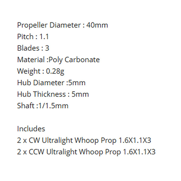 (HQprop) 4pairs of 1.6x1.1x3 (40MM) 1.5mm (2CCW+2CW) Micro Crossover Machine Blade